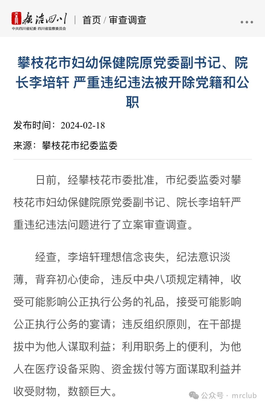 除此之外,返岗上班第一天,四川、安徽两地纪委还公布了对两位医疗卫生系统领导的立案审查调查结果,包括:芜湖市卫生健康委员会原副主任、三级调研员查忠海严重违纪违法问题,攀枝花市妇幼保健院原党委副书记、院长李培轩严重违纪违法问题。
