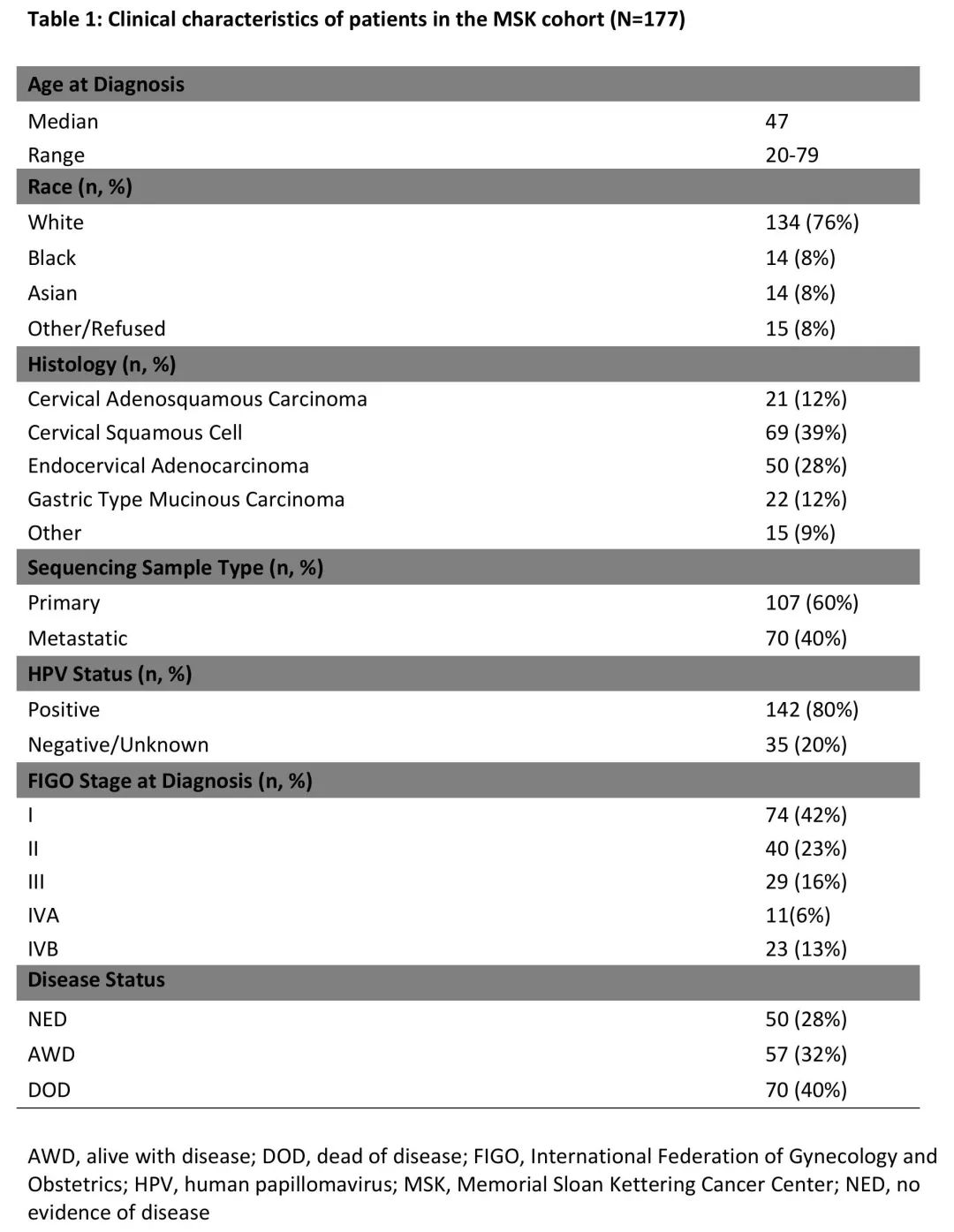 表1. MSK队列患者的临床特征(N=177)