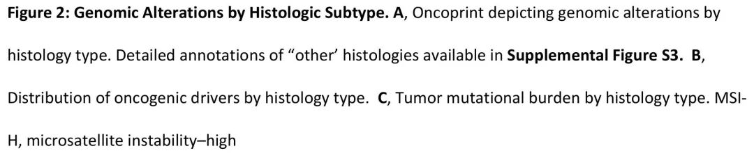 图2. 按组织学亚型分类的基因变异