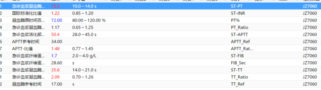 图4 凝血功能结果