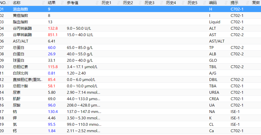 图5 常规生化结果