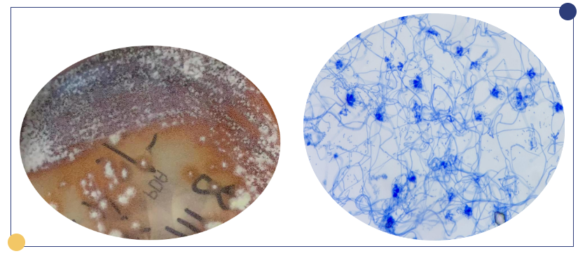 图7 沙堡弱培养(左)及乳酸酚棉兰染色