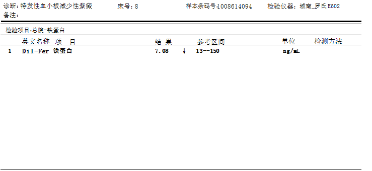 ★铁蛋白检测结果(图3):铁蛋白明显减低