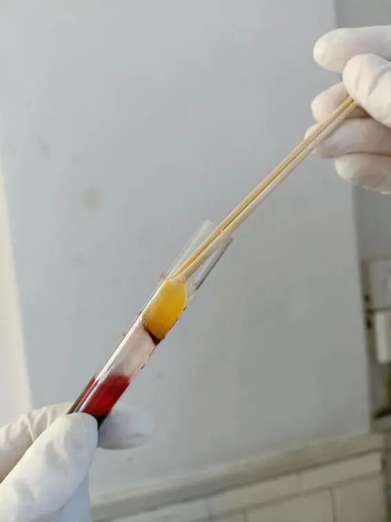 “事来了,不怕事。”笔者轻轻地将血胨挑破之后,再进行第二次离心,可是血清依旧呈胶冻样。