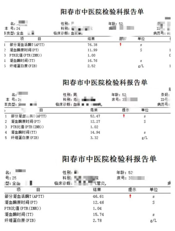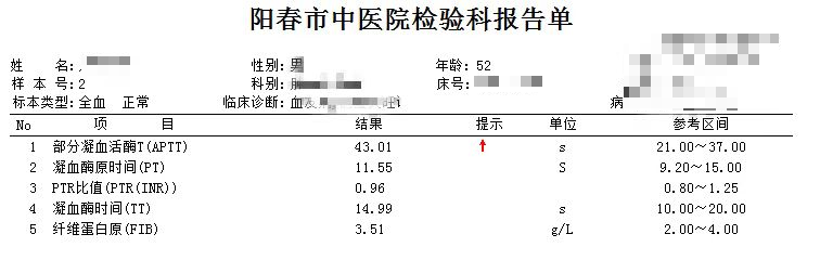 往日多次凝血结果均为APTT单独延长。