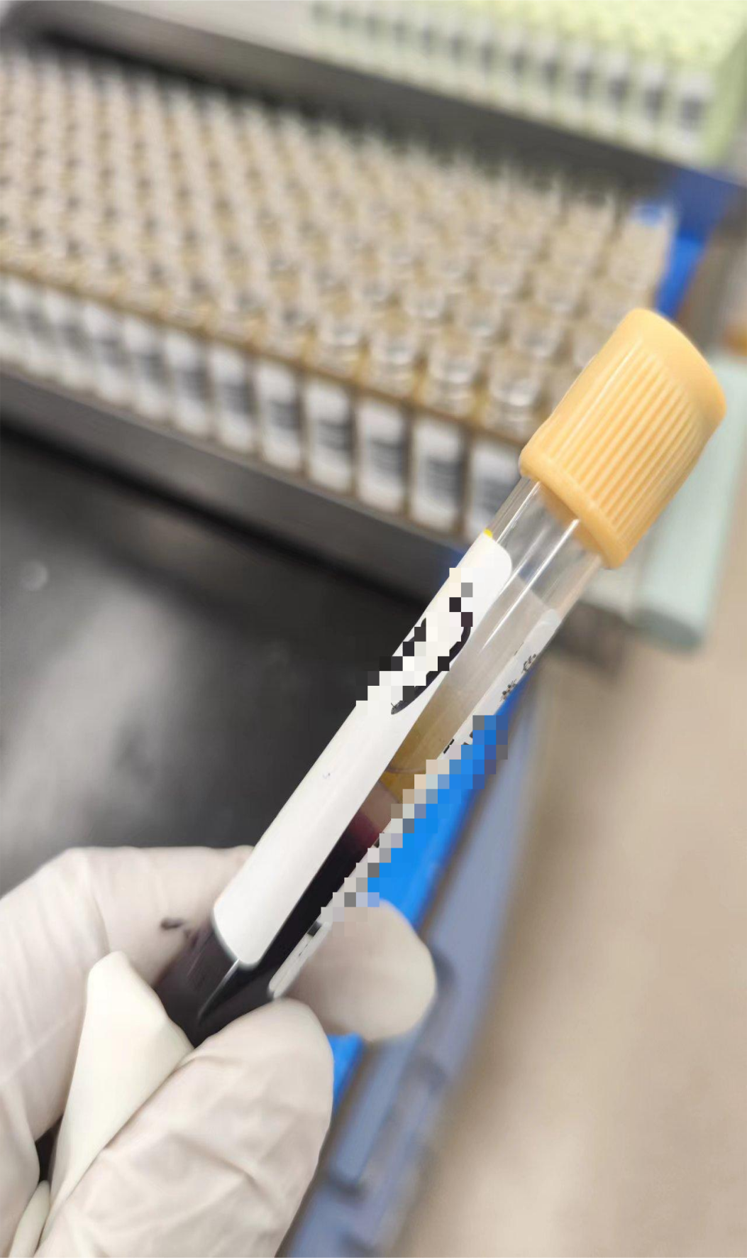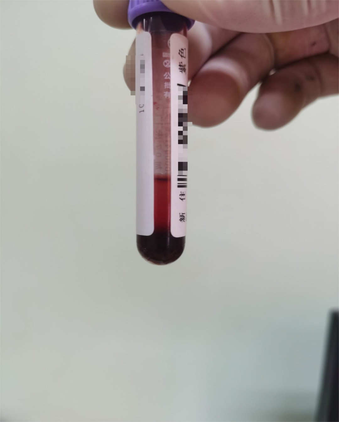 该患者的标本经离心后只有少量的血清,笔者第一反应难道是一例真红细胞增多症?于是立刻查看该患者的血常规。血常规结果如图2,标本状态如图3。