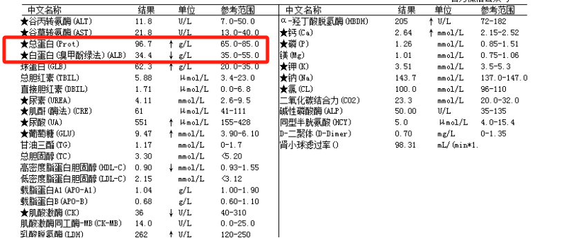 图5 患者的生化结果