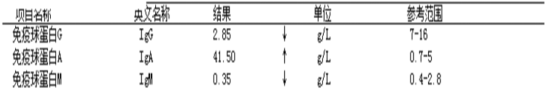 图6 患者的免疫球蛋白结果