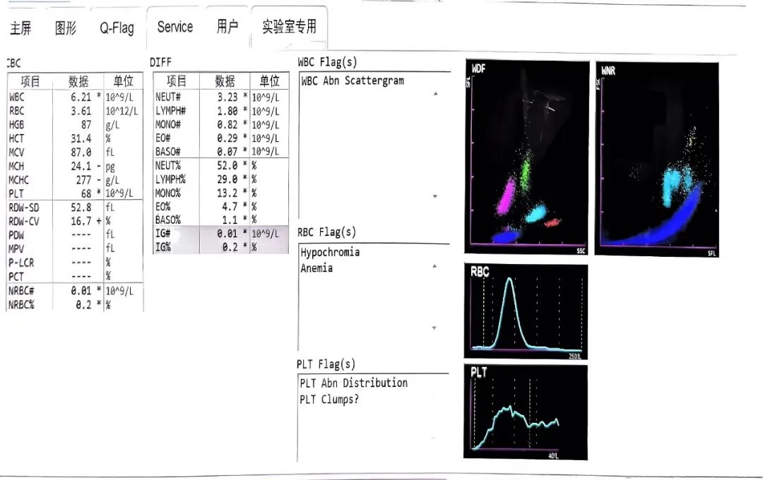 仪器报警信息:WBC Abn Scattergram,PLT Abn Distribution、PLT Clump?