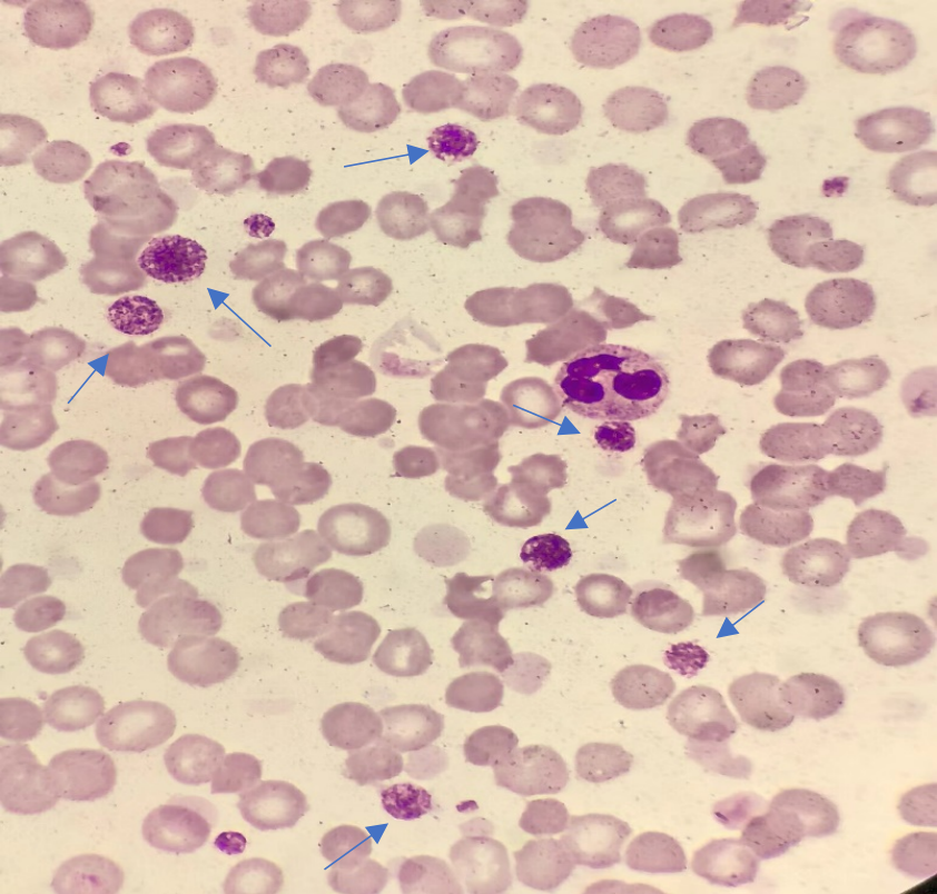 常见的引起血小板计数假性减少的原因有以下几种:采血不当所致、EDTA依赖性血小板假性减少症、严重的冷凝集现象影响血小板计数、血小板卫星现象、仪器未把大/巨大血小板计数在内等等因素,大/巨大血小板就是引起本案例中患者血小板假性减少的主角。在发出准确的血常规报告之前,我们要如何快速地“侦察”到它们的存在呢?